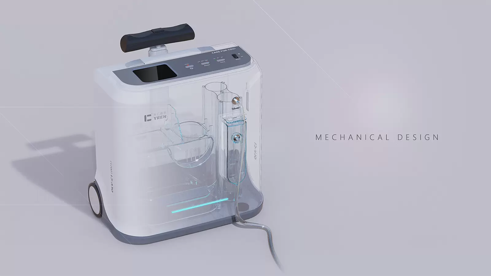 Mobile system: Incorporating a retractable rod and roller design, drawing inspiration from the portable logic of luggage. The pull rod can flexibly adjust its height to meet the push-pull needs of users of different heights; The roller is made of silent and wear-resistant materials to ensure smooth and low-noise movement, making it easy to transfer the oxygen concentrator to various areas of the home, which meets the core demand of "portability" and enhances the flexibility of usage scenarios.