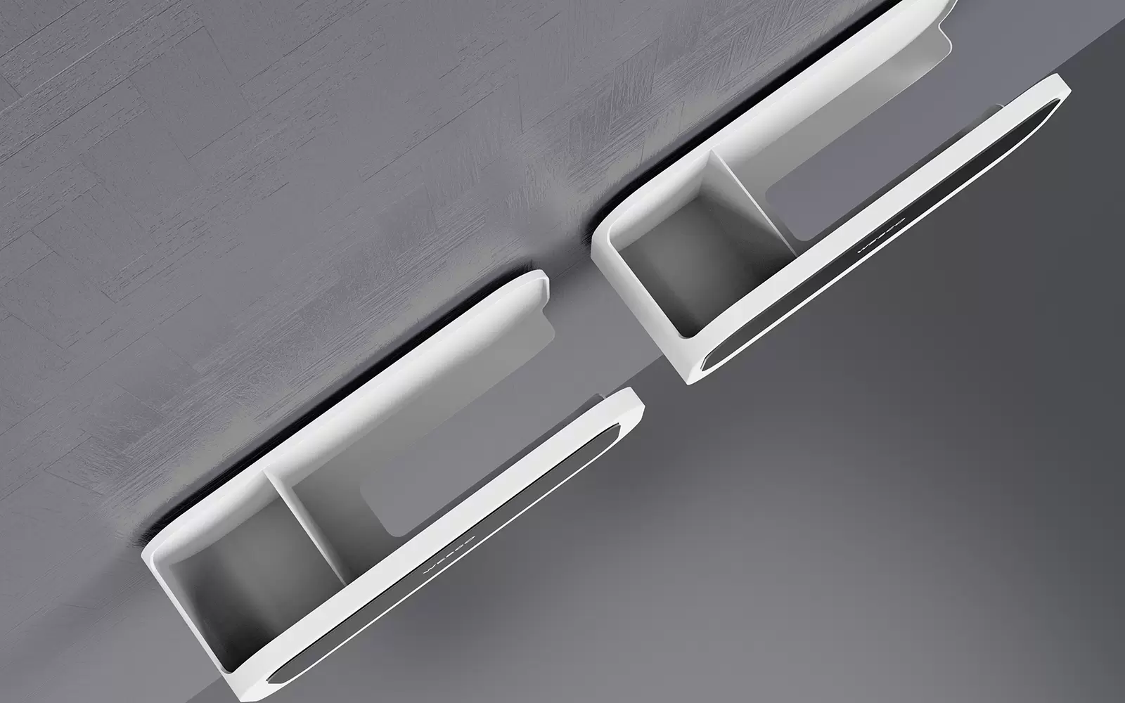 Adopting a wall mounted and recessed storage structure, the hair dryer is transformed from a "desktop space occupying object" to a "wall embedded device", freeing up countertop space. Layered storage area (presumably equipped with accessories such as air vents), allowing scattered items to be neatly arranged and suitable for "space cleanliness needs" scenarios such as bathrooms and hair salons.